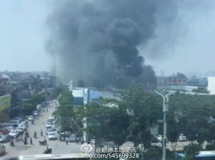 今天中午11點半左右,順德105國道大良新滘汽車城發生火災。