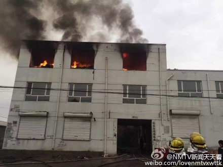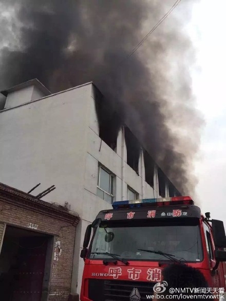 今天上午9點左右,呼和浩特紅山口村一帽子加工廠著火。