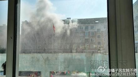 今天中午12點半左右,紹興陽明華都樓頂著火。