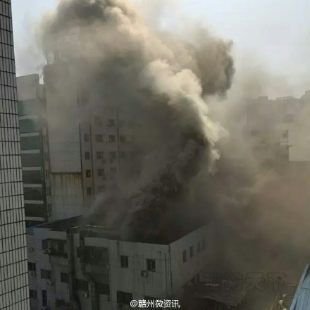 今天上午11點左右,贛州市鐵龍大酒店頂樓起火。