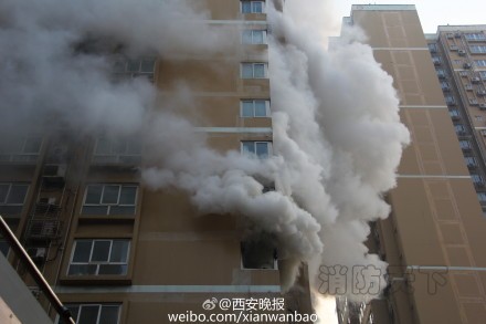 西安太白南路財政廳家屬院六樓起火
