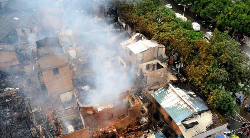 福州民房突發大火 近180名消防官兵投入滅火