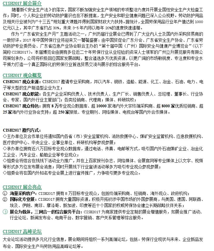 核心提示:2017第十屆中國(廣州)國際安全與健康產業博覽會