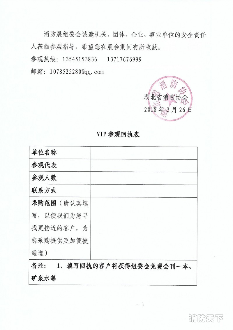 邀請參與2018中國(武漢)消防產品與應急救援裝備展覽會的參觀函