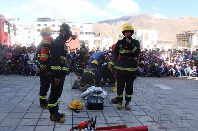 玉樹州位于青藏高原腹地,95%的常住人口為藏族,大部分地區群眾日常交流均使用藏語。2012年首屆“警校共建”活動中,學校消防宣講教師索南得知消防部門官兵大多為漢族、宣傳工作中語言不通,便推動學校組建了第一支藏漢“雙語”消防宣傳隊,讓消防安全常識真正的走近少數民族同胞身邊、走入牧民們的心坎。截止目前,全校累計發動282名師生組建12支藏漢“雙語”消防宣傳隊,先后深入農牧村和牧民聚居點開展消防宣傳600余次、發放消防宣傳手冊11萬份、撲滅初期火災16次。組織68名學生家長和少數民族同胞成立“馬背上的消防宣傳隊”,在春夏交替期,走進牧民們的流動放牧點宣傳草原防火知識370余次,幫助群眾查改火災隱患1300余條。