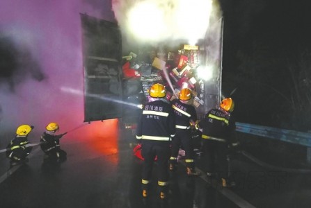 11月14日凌晨3時52分,在南大梁高速達州渠縣出口,一輛半掛車突發大火。這輛起火的半掛車,是一輛快遞物流車,裝載有大量的貨物。