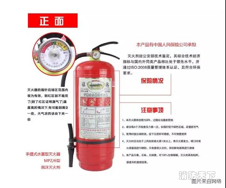 另外,如果是使用液體滅火器記住滅火時要對準火源根部進行掃射,如果使用二氧化碳滅火器的話,要注意佩戴防凍手套,室內要佩戴空氣呼吸器。