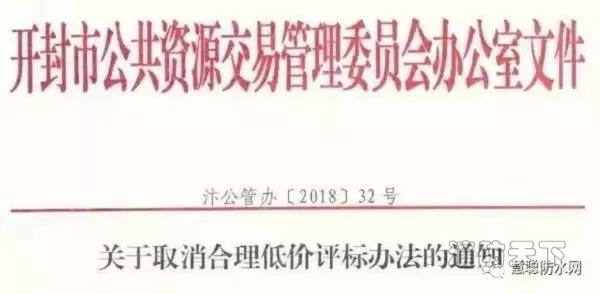 2018年11月7日,河南開封發布《關于取消合理最低價評標的通知》