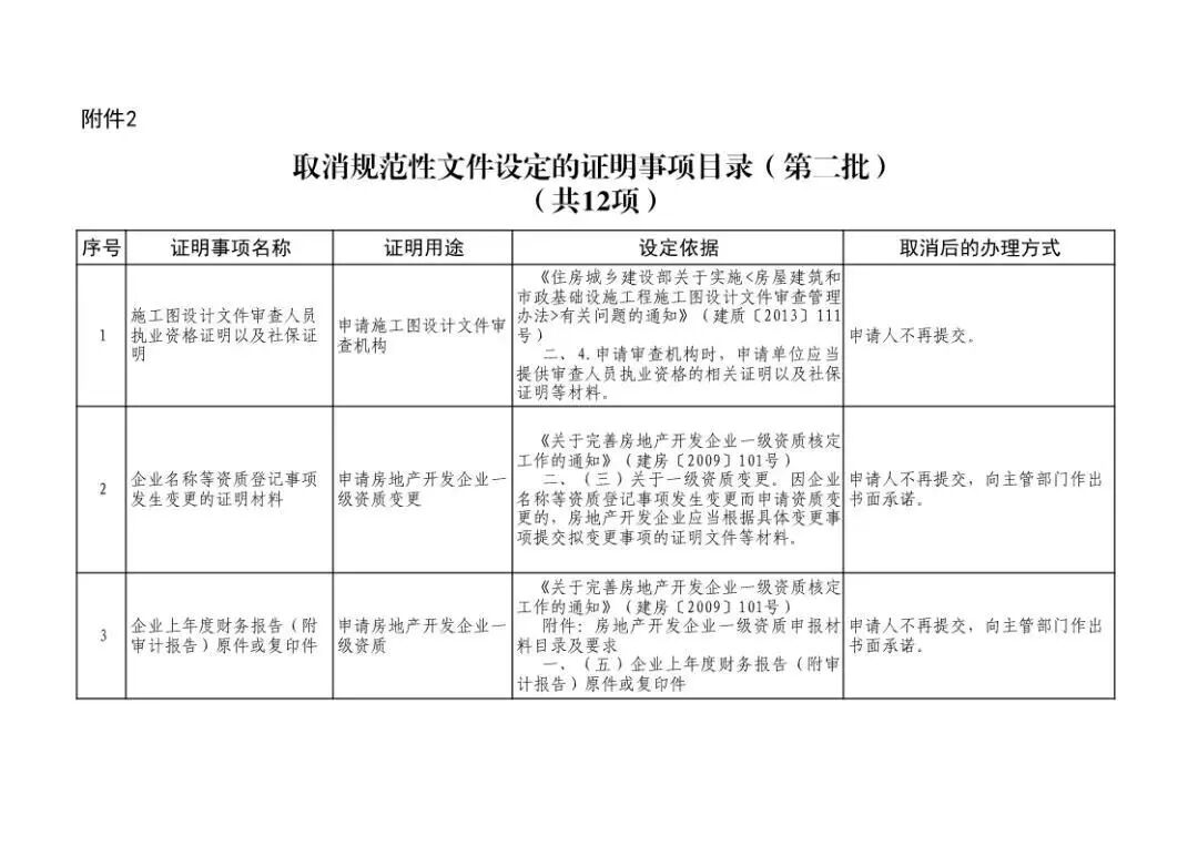 2、取消規范性文件設定的證明事項目錄(第二批)