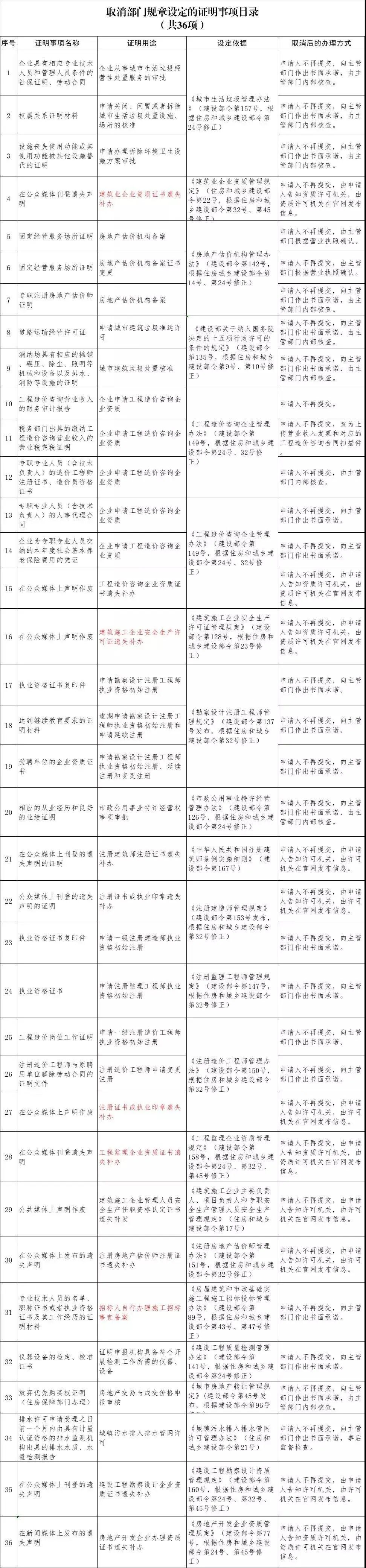 為貫徹落實黨中央、國務院關于減證便民、優化服務的部署要求,住房和城鄉建設部決定取消部分部門規章和規范性文件設定的證明事項,相關證明事項自公布之日起取消。