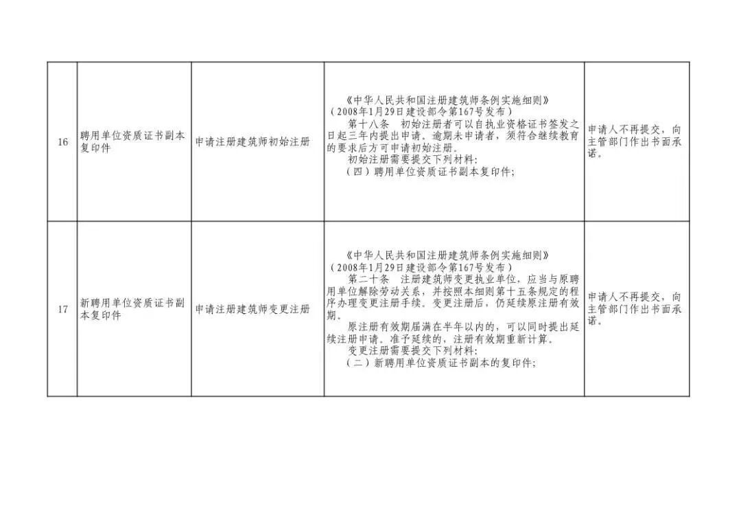 - 初始注冊:不再提交資格證書復印件、相應的業績證明、聘用單位資質證書副本復印件,改為書面承諾。