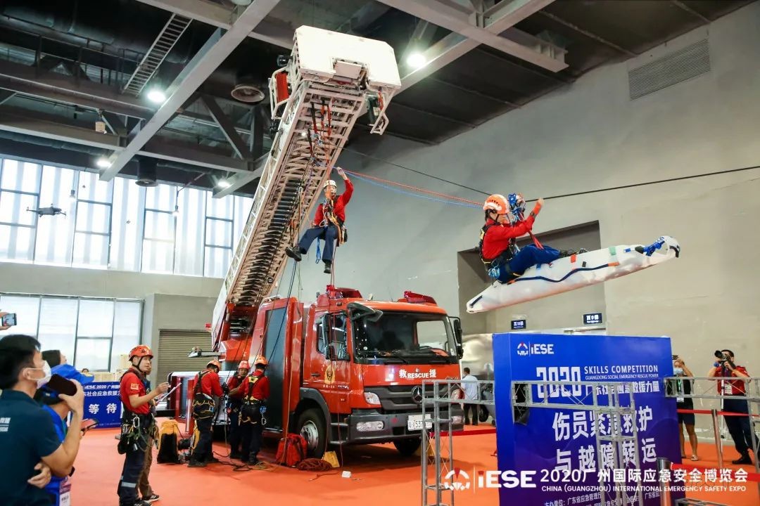 展會期間組委會響應廣東省應急管理廳的號召,組織開展“2020廣東社會救援力量技能競賽”,賽事現場開展了翻舟自救及落水施救賽、高空斜向轉運項目比賽、傷員緊急救護與越障轉運項目比賽、心肺復蘇術賽及無人機表演賽共5項救援賽事。本次比賽是廣東省第一屆社會應急救援力量技能競賽,也是廣東省至今舉辦的競賽項目最多、參賽隊伍最多、競賽水平最專業的社會應急救援力量技能競賽,全省36支社會應急救援隊伍、240多名隊員參賽。