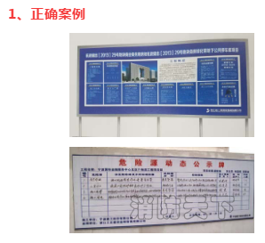 施工現(xiàn)場應(yīng)設(shè)有工程概況牌、管理人員名單及監(jiān)督電話牌、消防保衛(wèi)(防火責(zé)任)牌、安全生產(chǎn)牌、文明施工牌和施工現(xiàn)場平面圖、施工現(xiàn)場消防平面布置圖等。標(biāo)牌應(yīng)規(guī)格統(tǒng)一、位置合理、字跡端正、線條清晰、內(nèi)容翔實、表述明確,并固定在現(xiàn)場內(nèi)主要進(jìn)口處。嚴(yán)禁將圖、牌懸掛在外腳手架上。