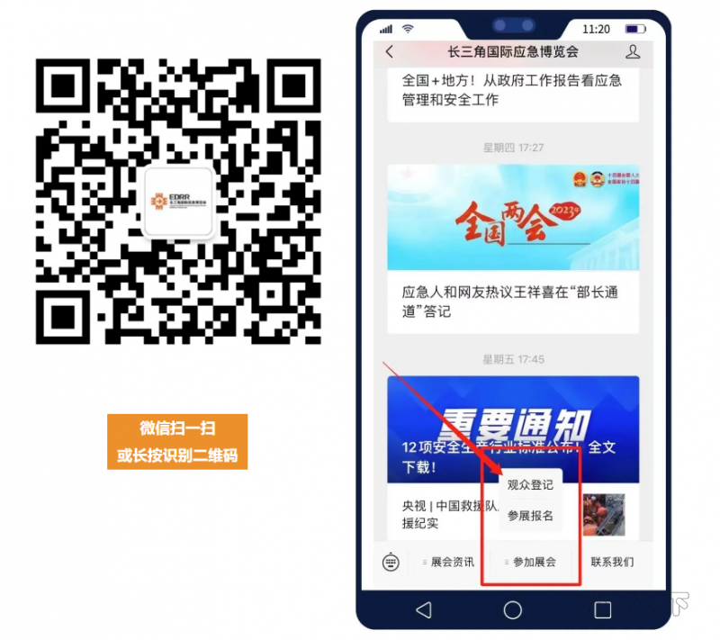 掃描并關注“長三角國際應急博覽會”公眾號,點擊菜單欄【參加展會】并選擇【觀眾登記】