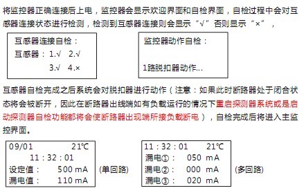將監(jiān)控器安裝在配電箱的面板或者箱內導軌上,并在箱內合適位置固定剩余電流互感器,使塑殼斷路器的 。