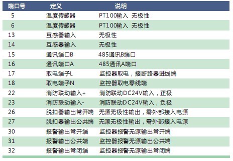 端口使用在總配電回路上,或者使用在重要監(jiān)控回路上。報警輸出可用于外部連接