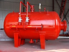 比例混合器可使水和泡沫液自動按一定比例混合。當壓力水通過比例混合器時,一部分水通過“進水閥”管路進入貯罐水腔,擠壓膠囊,因噴嘴前后微小的壓差,使得膠囊內的泡沫液經吸液管被擠出與水混合成為泡沫混合液流,經泡沫產生器或其他噴射設備噴出泡沫進行滅火工作。