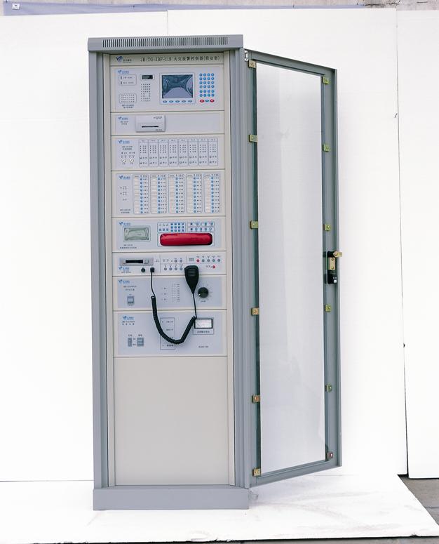柜式控制器內有一個主控單元(4U)、可多個回路監(jiān)控板(不占用面板)、可多個總線控制盤(4U)、可多個專線控制盤(3U)、多個電源供電單元(4U)、一個打印機面板(2U)。