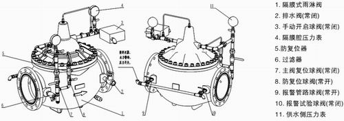 隔膜雨淋報警閥具有防復位結構,主閥開啟后,防復位器啟動,防止誤操作使主閥關閉。