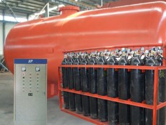 消防氣體頂壓給水設備中消防氣壓水罐是儲水部件,其有效水容積最低要求3m3。氣壓水罐均采用補氣型氣壓水罐。該類設備靠大型氣壓水罐提供10min消防初期用水量,不設消防泵組,只設有消防穩壓泵組。主要不同在于氣體頂壓設備采用高壓氣瓶組儲存消防工作時的動力氣源,動力氣源與氣壓水罐分置,當消防指令到達,啟動頂壓系統向氣壓水罐輸入滿足消防工作壓力的壓縮氣體,將罐內消防用水置換排出,消防用水以恒壓狀態供給消防部件。