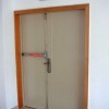 ③門內:推杠式逃生鎖體;門外:帶鑰匙保險鎖頭。
