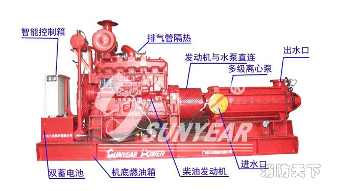 細水霧供水要求為泵組式細水霧系統,采用水泵對系統進行加壓供水,廣州三業公司研發生產的數字定壓柴油機泵+多級離心泵組合的高壓細水霧消防泵組,滿足NFPA750標準對泵組工作壓力的要求,同時能夠設置多個出口壓力揚程,無需特殊噴頭,縮減消防系統的成本。細水霧柴油機水泵的揚程范圍在100~1000m,輸送液體流量自15~55m3/h。