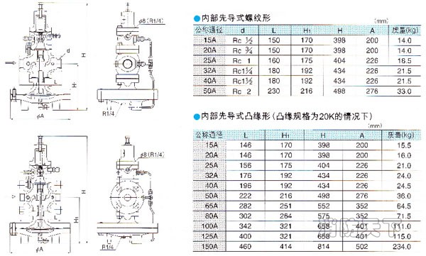 內導活塞式。此類型的減壓閥集導閥和主閥于一體。導閥的設計與直接作用式減壓閥類似。來自導閥的排氣壓力作用在活塞上,使活塞打開主閥。