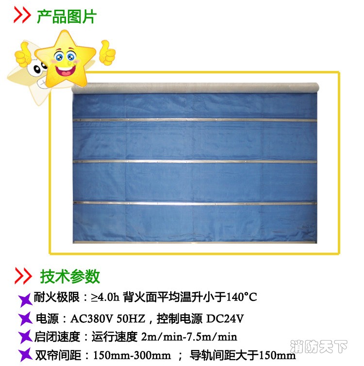 指用無(wú)機(jī)纖維材料做簾面(內(nèi)配不銹鋼絲或不銹鋼絲繩),用鋼質(zhì)材料做夾板、導(dǎo)軌、座板、門(mén)楣、箱體等,并配以卷門(mén)機(jī)和控制箱所組成的能符合耐火完整性要求的卷簾。