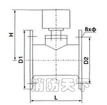 3、ZSJZ型〈法蘭式〉水流指示器安裝采用三通法蘭直接同管道法蘭連接,適用于管徑100mm以上,三通管長度為180mm。