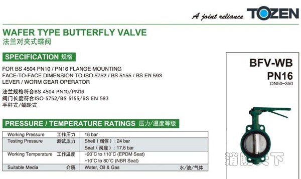TOZEN BVF-WB對夾式蝶閥技術參數: