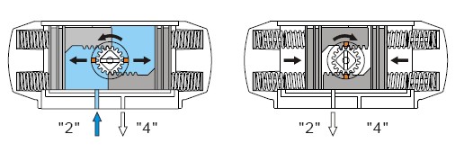 雙作用氣動(dòng)執(zhí)行器工作原理: