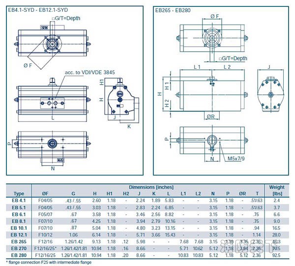 德國EBRO EB4.1 SYD氣動執(zhí)行器/關(guān)于在選用EBRO SYD系列氣動執(zhí)行器前,請確認(rèn)閥門扭矩。并在扭矩上增加安全值,水蒸汽或非潤滑液體介質(zhì)增加25%安全值;非潤滑漿料液體介質(zhì)增加30%安全值。