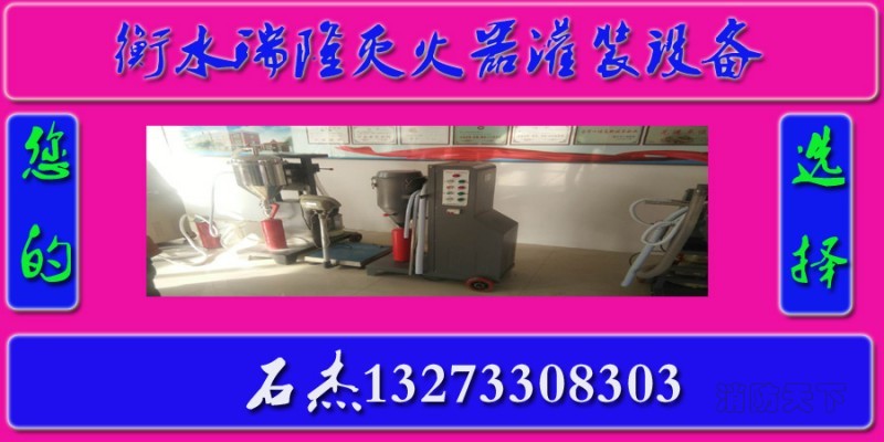 本實用新型一種滅火器干粉自動灌裝設備,包括除塵罐、積塵罐、干粉料倉、吸粉噴頭、限位支架、滾筒傳輸裝置、限位稱重裝置、頂升裝置、一電接點真空表、第二電接點真空表、控制箱、真空泵,所述除塵罐頂部與T形管下端連接,T形管水平方向一端設有壓縮空氣電磁閥,T形管水平方向另一端設有真空泵電磁閥,除塵罐內部設有過濾器,過濾器下方除塵罐罐體設有吸粉電磁閥,過濾器下方除塵罐罐體內設有限位傳感器,除塵罐底部設有一閥門;積塵罐罐體設有一電磁閥,積塵罐底部設有第二閥門;干粉料倉底部通過管道與灌粉閥連接;吸粉噴頭固定于限位支架上,吸粉噴頭頂部設有流量控制閥;滾筒傳輸裝置下方設有限位稱重裝置,限位稱重裝置下方設有頂升裝置;其中壓縮空氣電池閥與壓縮氣源連接,真空泵電磁閥通過管道與真空泵連接,T形管與一電接點真空表連接,過濾器下方除塵罐罐體與第二電接點真空連接,除塵罐底部通過一閥門與積塵罐連接,第二閥門通過管道與灌粉閥連接,吸粉噴頭通過管道與吸粉電磁閥連接,吸粉噴頭通過管道與泄壓閥連接,流量控制閥通過管道與灌粉閥連接;滾筒傳輸裝置、限位稱重裝置、頂升裝置、一電接點真空表、第二電接點真空表、真空泵、壓縮空氣電池閥、真空泵電磁閥、吸粉電磁閥、一閥門、限位傳感器、一電磁閥、第二閥門、灌粉閥、流量控制閥、泄壓閥分別于控制箱連接。除塵罐外殼設有一氣錘,積塵罐外殼設有第二氣錘,干粉料倉外殼設有第三氣錘一氣錘、第二氣錘、第三氣錘分別與控制箱連接。一閥門為蝶閥,第二閥門及灌粉閥為球閥,分別通過氣壓缸控制閉合除塵罐1與設備固定支架之間設有彈簧。控制箱9采用PLC控制模塊。
