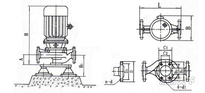 (1) ISG型單級單吸管道離心泵為立式結構,進出口口徑相同,且位于同一中心線上,可象閥門一樣安裝于管路之中,外形緊湊美觀,占地面積小,建筑投入低,如加上防護罩則可置于戶外使用。